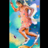 I have tried to capture the whimsical, playful essence of childhood imagination, with this little girl becoming a fairy in her own magical world, with actual fairy wings and pixie dust all around her. She is flying on a page from her favourite story book with a balloon.
